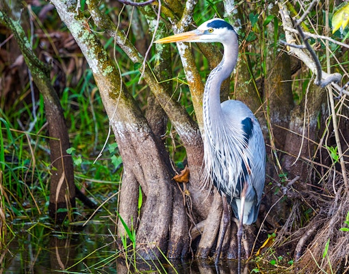 This tall, blue-gray bird is a familiar sight in New Orleans marshes. It usually stands motionless, waiting for the perfect moment to spear a passing fish.