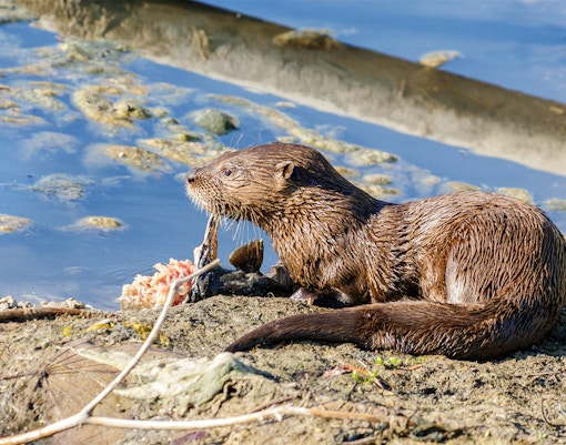 River otters move quickly and rarely sit still, but some visitors catch them sliding into the water or chasing fish near quieter inlets.