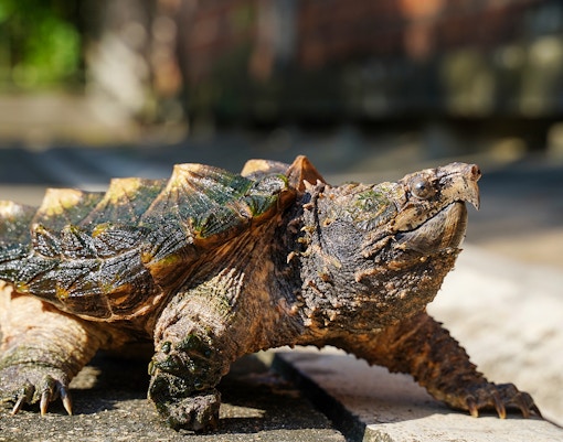 This impressive turtle lives in deeper, slow-moving areas of the swamp. Its ridged shell and powerful jaws give it a prehistoric look.